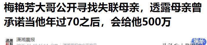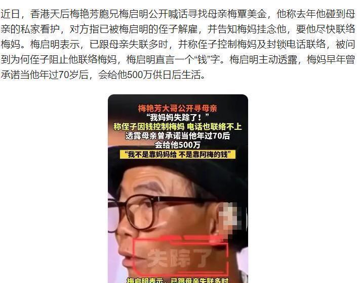 潇湘晨报:梅艳芳大哥公开寻找失联母亲,透露母亲曾承诺当他年过70之后,会给他500万